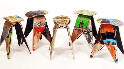 Η εταιρεία Deckstool από το Clifton Heights της Pennsylvania μέσω του δικτύου ανακύκλωσης παλαιών skateboards, που η ίδια ίδρυσε, συνέλεξε κομμάτια από σπασμένα skateboards και δημιούργησε πρωτότυπα έπιπλα – έργα τέχνης.